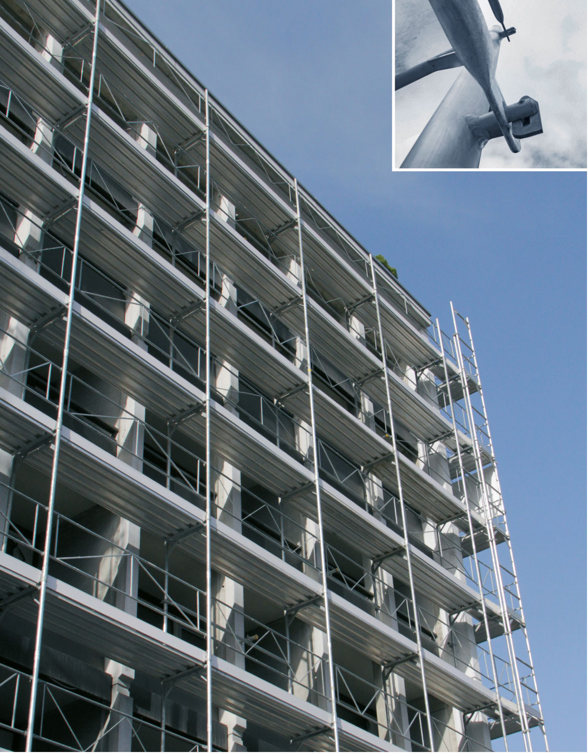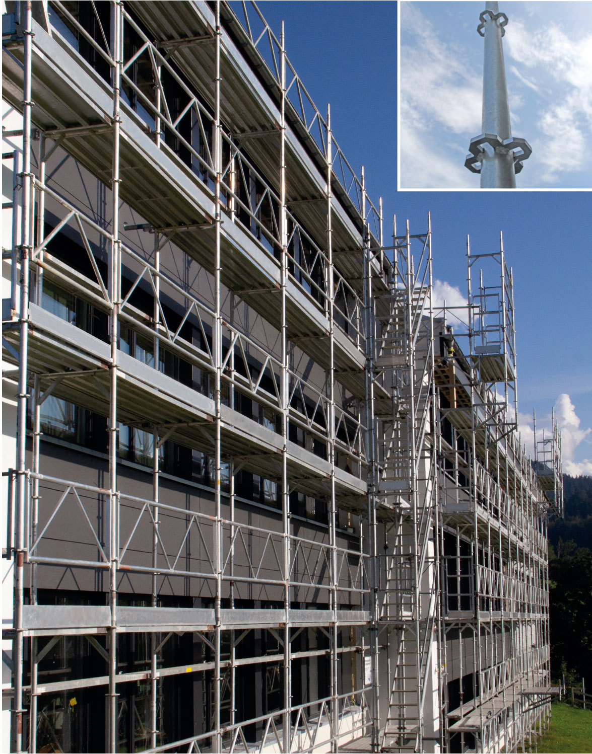 The façade scaffolding with a modular scaffold function, which has expanded and been optimised over the years, is a pleasure to use, especially for roofers and metalworkers.